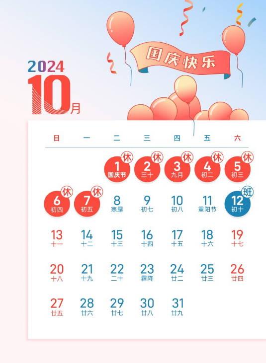 展豐科技2024年國慶節放假的通知